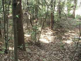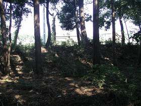 | 北側の虎口部分。枡形のようになっているが、後世の改変であろうか。 | 北側の土塁の下にある腰曲輪。 |