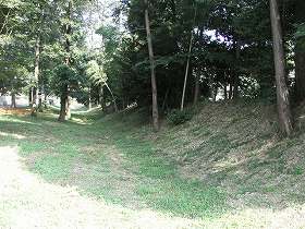 この部分、本来はどのようになっていたものであろうか。また、城の西側はグランドになっているために、かなり地形がいじられてしまっているようである。西側の土塁と堀はこれの建設のために破壊されてしまったらしい。西側には現在は高さ1mほどの段差が南北に連なっているだけとなっている。