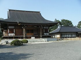 | 北側の堀。現状では深さ3m、幅10mほどである。 | 東持寺境内。立派なお寺だ。 |