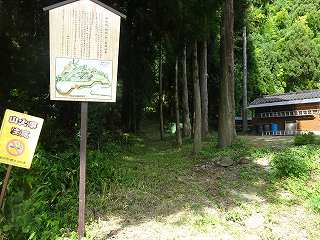 白嶺小学校は、とても立派でしゃれた建物である。校舎を前にして、車道をどんどん西側の奥の方に回り込んで行くと、やがて駐車スペースに到達するので、ここに車を停めて山林内部に入って行く。入り口に公園の案内板が立てられていた。ただし、城に関する記述はない。