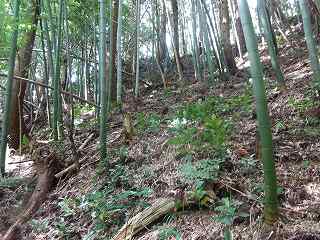 さて、1郭の西側先端部から谷戸部に降りていく道があり、この下の谷戸部が4郭である。4郭には石垣が構築されているらしい。