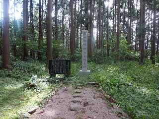 3郭の南側には左右を土塁で囲まれた虎口がある。これを抜けて行くと、そこが2郭。2郭には、「白山神社創建の地」を示した記念碑が建てられていた。現在は、舟岡城の南麓にある白山神社は、かつてはこの城内に祭られていたものなのであろうか。
