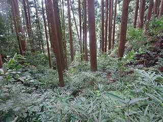 神社の境内そのものも割合と広いが、その左手や奥にも、ヤブになってはいるが、それなりに広い空間が存在している。これだけの面積があれば、相当数の建造物を営むことも可能であったと考えられる。