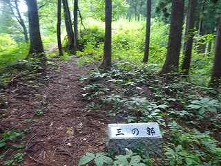 すると、ちょっとした切岸があり、その上に平場があった。ここに3郭の碑が建てられていた。国指定史跡だけあって、案内表示は充実しているようである。3郭は、面積がとても狭い郭である。