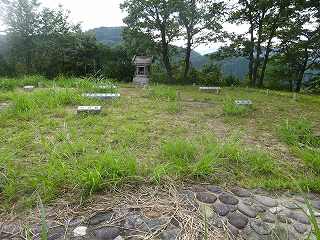 2郭は南北に細長く、西側と北側には土塁が盛られていた。ここからは3棟の建造物跡が検出されているようで、それが分かるように建物の規模を示す枠が設置されていた。往時の建造物の様子が分かるように整備されている山城と言うのはめったにないので、貴重な遺跡である。ただし、郭内部は少しヤブ化してしまっているので歩きにくい箇所もある。