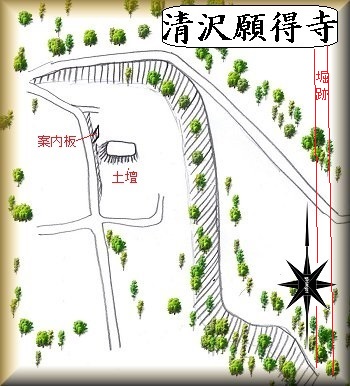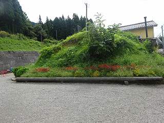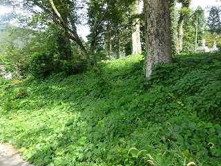 | 清沢願得寺跡内部にある土壇。 | 寺院跡背後の土手。 |