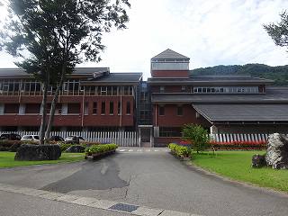 | 北側の濁澄橋から遠望する瀬戸丸山城。 | 白嶺小学校。立派な建物である。 |
