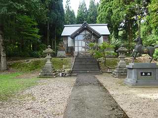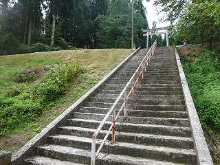 | 三上神社入口の階段。 | 境内は2段の構造になっている。社殿の前面がガラスで覆われているのが珍しいのだが、これは雪国ならではの工夫なのであろうか。 |