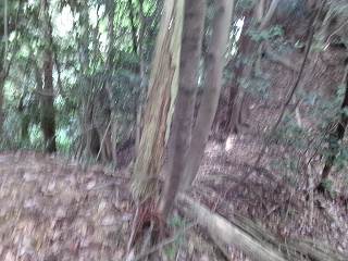 途中には堀切状の切通し部分も見られる。それらを経過する際にも「←本丸」と書かれた表示があちこちにあり、それをまっすぐに進んで行く。