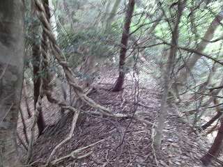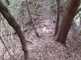 | 若宮丸の城塁。 | 大手道の途中にあった崩落部分。 |