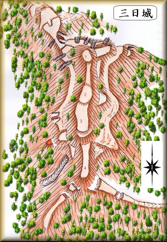 三日城は南北朝時代の勧応元年・正平5年(1350)頃に築かれた城だと言われる。