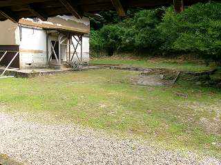 | 道路沿いにある北側の堀。 | 堀は西側に進むにつれて浅くなる。 |