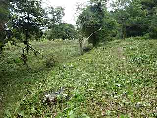 1郭から坂道状の通路が北東側に続いており、その先にも郭が展開している。しかし、こちらから先はヤブが切り払われておらず、夏場はちょっと探索が難しい。