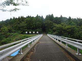 後は西方に150mほど進んで行くと、城の入口の堀切と土橋が見えてくる。尾根が細くなって中央が土塁状になっているのが目印で、城の入口に到達したことが分かる。