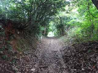 城の主要部までは、軽トラが通れるような道が付けられている。山稜の長さもけっこうあるので、比高100mほどあるにしては、緩やかな傾斜の山道を登って行くことになる。