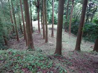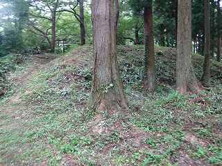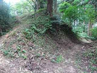 堀幅は10mほどとかなり広いのであるが、深さは現状では2mほどしかない。これでは防御力はほとんど発揮できず、後世の耕作化によって、かなり埋められてしまっているのであろう。1郭周囲に土塁が認められないことから、土塁を崩して堀を埋めて耕作地にしてしまったのだと思われる。本来の堀の深さはあと2,3mほどは深かったのではないだろうか。
