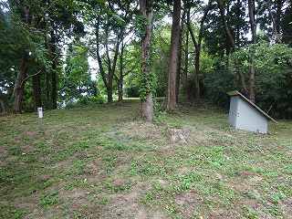 | 本丸から二ノ丸へと接続する虎口。 | 二ノ丸に立てられた城址標柱。 |