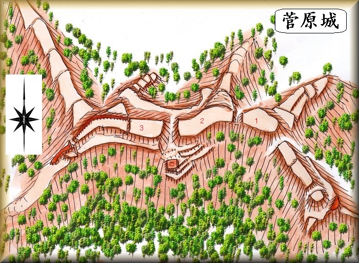 菅原城はそれなりに広い城域を有した山城であるが、周辺部はヤブ化しているため、詳細は把握しづらくなってしまっている。