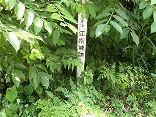 大杉川が蛇行する地点にそびえている比高20mほどの細長い山稜が江指城の跡である。