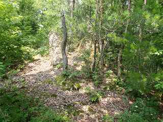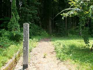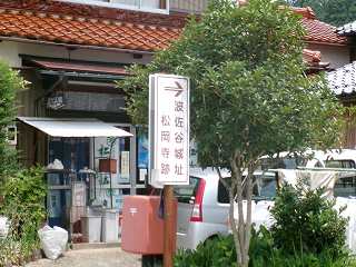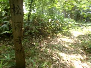 最初の道の突き当りを右側に曲がるとすぐに松岡寺入口の標柱がある。これを発見する方が分かりやすいであろう。こちらのルートが上記の登城道1である。