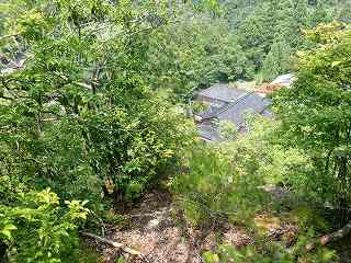 松岡寺は波佐谷城のある山稜とは谷戸部を挟んで南東側にある。だから城のある谷戸部を左側の下に見ながらひたすら登って行くことになる。
