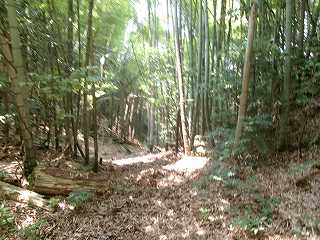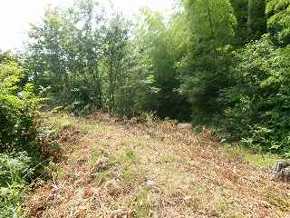 登城道1から登って行くと、松岡寺との分岐点がある。これを進んで行っていったん降って登ったところの平場が松岡寺跡である。