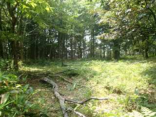 山稜上まで登って行ったところで、大きな平場が見えてくる。これを乗り越えて北西側に進んで行く。