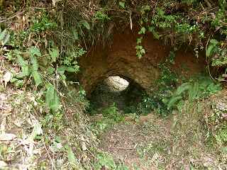 その手前に「氷室」という案内があった。そこは大きな穴となっており、東側の下に横穴が開けられている。よそではあまり見られない構造物であり興味深い。