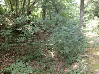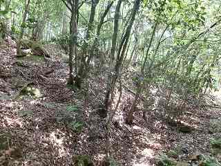 そうしてようやく主要部下の土塁囲みの区画5の所まで来た。ここから後は比高40mほど登れば主郭である。