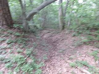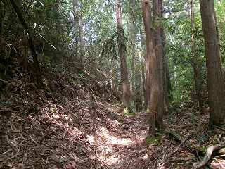 これだけの長さがあれば、堀切や土塁による区画があってしかるべきだが、そうした城郭的な区画はまったく見られない。