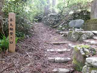 | 国道沿いの案内 | 登城道入口。ここに車を停められる |