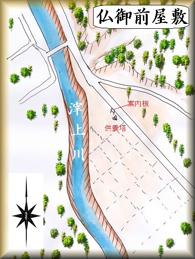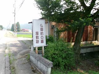 岩淵城の下から国道360号線を南下していった所に「仏御前屋敷跡」と書かれた看板が立てられているのが目に入ってくる。