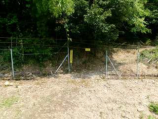 城の周囲には獣除けの柵が巡らされているのだが、上記の登城道入口の所に開口部があり、それを開けて入って行く。
