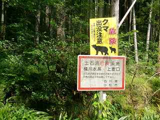 入口には「熊注意 音で知らせましょう」といった看板が立てられている。熊ベルは必須である。
