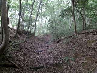 登城道と言っても明瞭な道ではなく、谷戸部の底を通って登って行くようなルートである。
