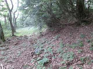 すると谷戸部へと接続していく堀切があり、それを乗り越えたところが上の城の腰曲輪となっていた。