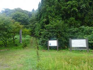 | 1郭への登り口。 | 1郭内部にある城址表示板。 |
