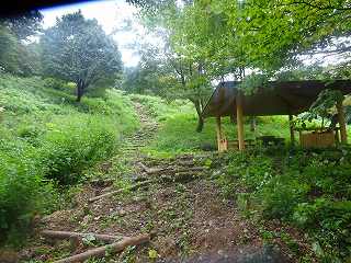 | 8の郭の東屋。台風の影響であろうか。階段はあちこちで崩落してしまっていて歩きにくい。 | 7の郭にある櫓状の建造物。 |