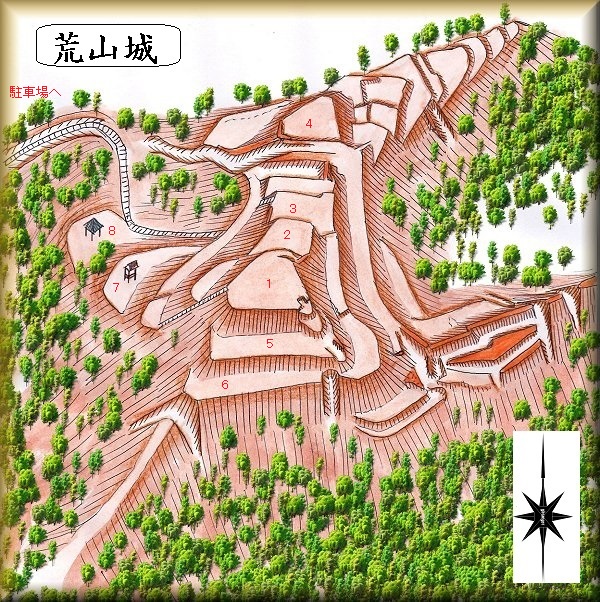 荒山城はなかなかの規模を有する山城で、能登の山城としては巨大な部類に属する方である。駐車場も遊歩道も整備されているので、近くまで来たら、一度は立ち寄ってもいい山城であると思う。