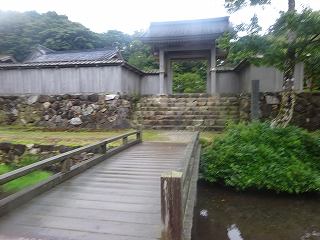 車は資料館の駐車場に停めさせていただいて、歩き始める。ここにはかつて多数の僧房が存在していたようで、その跡の空き地があちこちにある。中でも大宮坊は、いかにも城館的な造りである。前面には水堀を配置し、周囲を石垣で固めている。山門も城門と呼ぶのにふさわしいものである。実際、城館的な要素を持って用いられていたものではないかと考えられる。