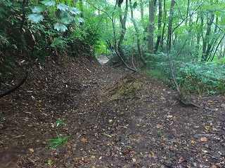 | その先の堀切。 | そこから切通し状の通路が降っている。 |