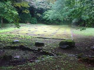 さらに降って行くと、東林院跡に出た。東林院も前面に石垣を配した広い面積を持った郭であり、山麓居館を思わせるものである。
