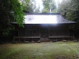 | 大宮坊の内部。復元された建造物がある。 | 伊須流岐比古神社の奥にあった建造物。 |