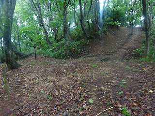 | 2郭から見た1郭城塁。 | 1郭への登城道。やはり破壊されている。 |