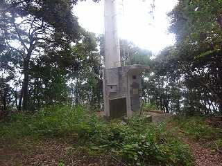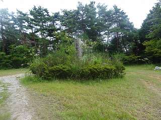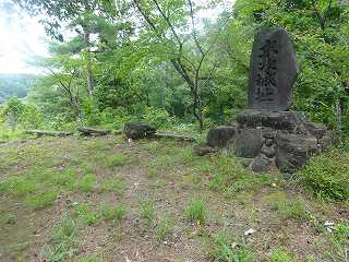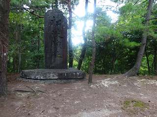 墓地の上が本丸である。本丸の登り口は北側と南側とに付けられているが、墓地からそのまま登って行った。内部は長軸30mほどの細長い郭となっている。ここに古い城址碑が建てられていた。