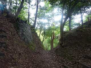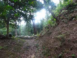 | 横堀内部にある虎口。 | 2郭城塁を北側から見たところ。右手に土塁がある。 |