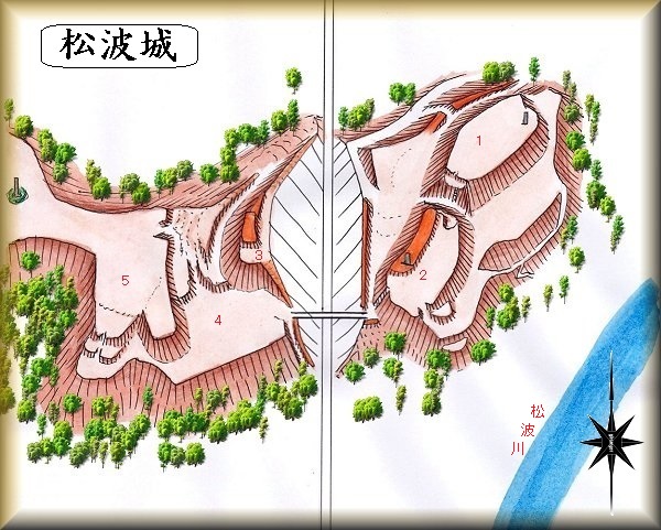 | 松波城は、能登国人であった松波氏の代々の居城であったと伝えられている。 松波氏は、文明6年(1474)、能登守護畠山義統の3男義智が松波に入部し、松波氏を名乗るようになったのに始まる。その際に松波城が築かれたのではないかと想定されている。 松波氏は能登衆として室町将軍に仕えていたようで、天文6年(1537)には、京都から近江に下向して六角定頼に対面している。 松波氏は能登守護畠山氏の一族であり、有力家臣として位置づけられていた。天正元年(1573)の「気多社檀那衆交名」にその名前が見えている。 天正年間、畠山義綱の3男であった義親は、松波氏に養子として入った。そんなこともあり、松波氏と畠山氏との関係には強いものがあり、天正5年に上杉謙信の能登攻めによって畠山氏が滅亡した後も、松波義親は、松波城に籠城して、上杉勢に対して抵抗していた。 結局、松波城は落城、義親も討ち死にして松波氏は滅亡した。松波城も、これによって廃城となってしまったものと考えられている。 |