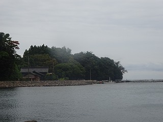 そこで集落の奥に入って行って、先端近くの急坂を降って海のそばまで降りていったところ、正面に城址が見えてきた。この辺りに空き地もあるので車はそこに停めて置くことが可能である。