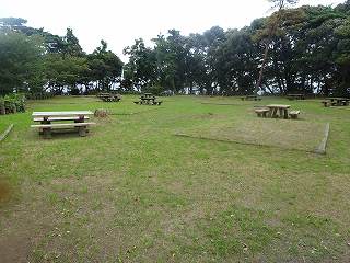 キャンプ場までは車道が付けられているのだが、入口に輪留めがしてあるために、内部まで車で進んで行くことはできない。車は、手前にある、能登海洋センターの駐車場に停めて歩いてくるのがよいだろう。