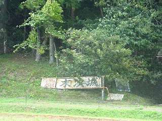 | 1郭にはキャンプをしている人たちがいた。 | 堀切内部に落ちていた案内板。 |